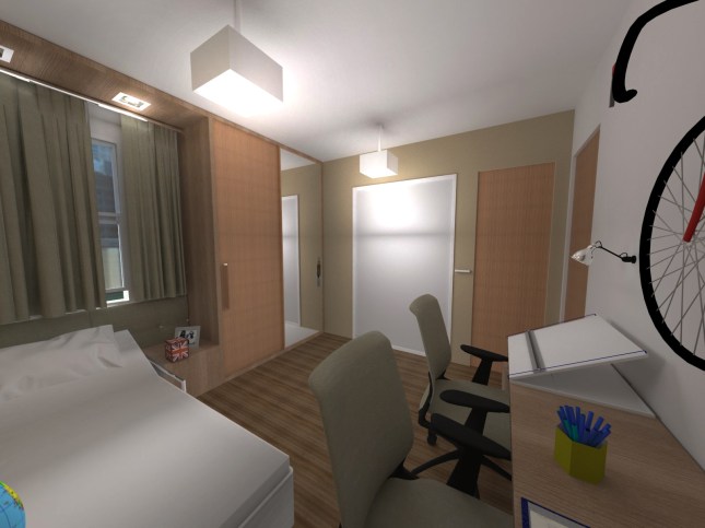 É neste ambiente que se desenvolve a proposta de redefinição dos layouts. Com a chegada da adolescência, novas demandas surgiram: os meninos que antes dormiam juntos terão doravante seus quartos individuais que devem oferecer um programa de atividades semelhantes, mas atendendo algumas especificidades: Pedro tem habilidades funcionais motoras reduzidas que, de tempos em tempos, variam entre o uso de cadeiras de rodas e andadores; recentemente, vem sendo estimulado a andar de forma autônoma sem o uso de tecnologias assistivas situação essa que lhe dará a liberdade de escolher para onde quer ir – andando ou correndo a seu modo. Embora ele apresente dificuldades para aprendizagem de conteúdos educacionais, sua habilidade visual é adequada, mas, como qualquer pré-adolescente, sua habilidade funcional auditiva é, na opinião dos pais, bastante “seletiva”.