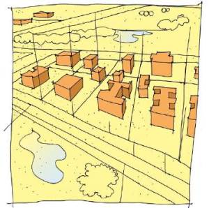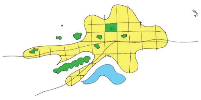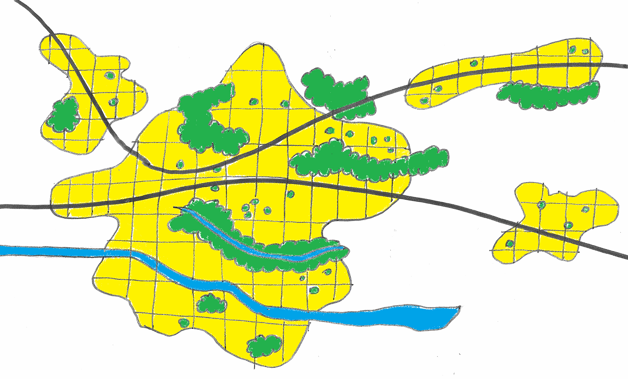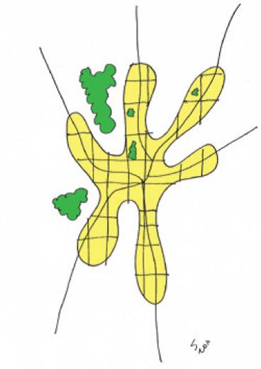 II – tentacular – structured by a compact core which irradiating arms of urbanization along street or water lines.