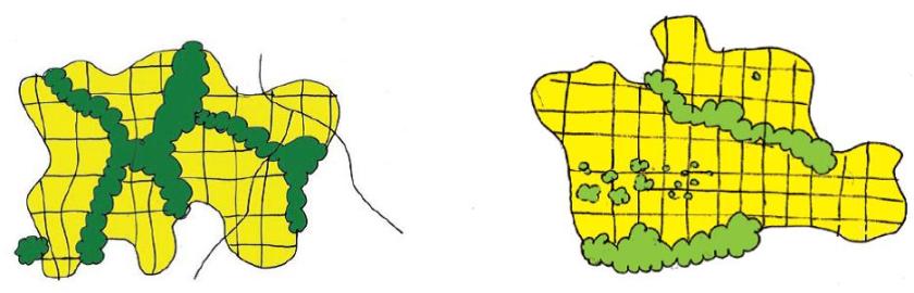 I – Open spaces system within a compact urban spread, as in the cases of São Paulo and Belo Horizonte.