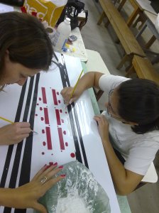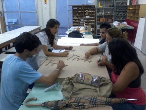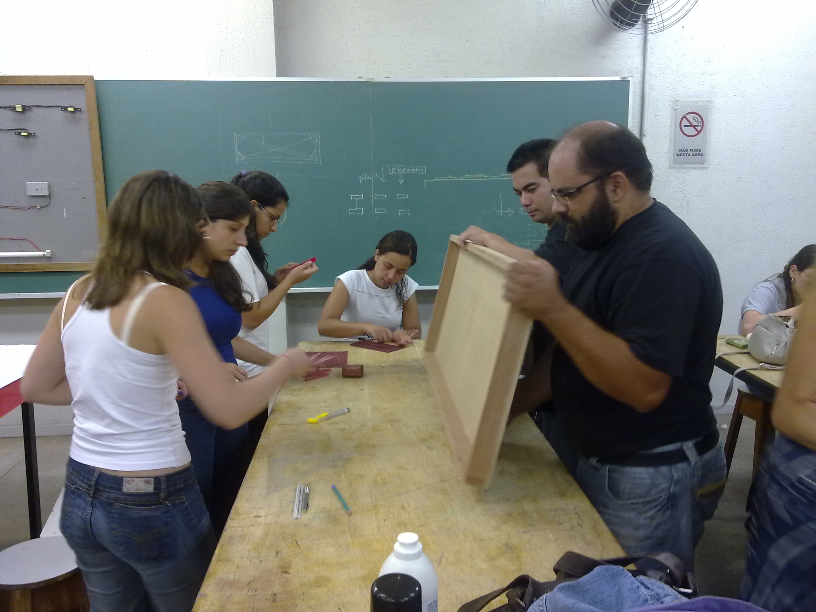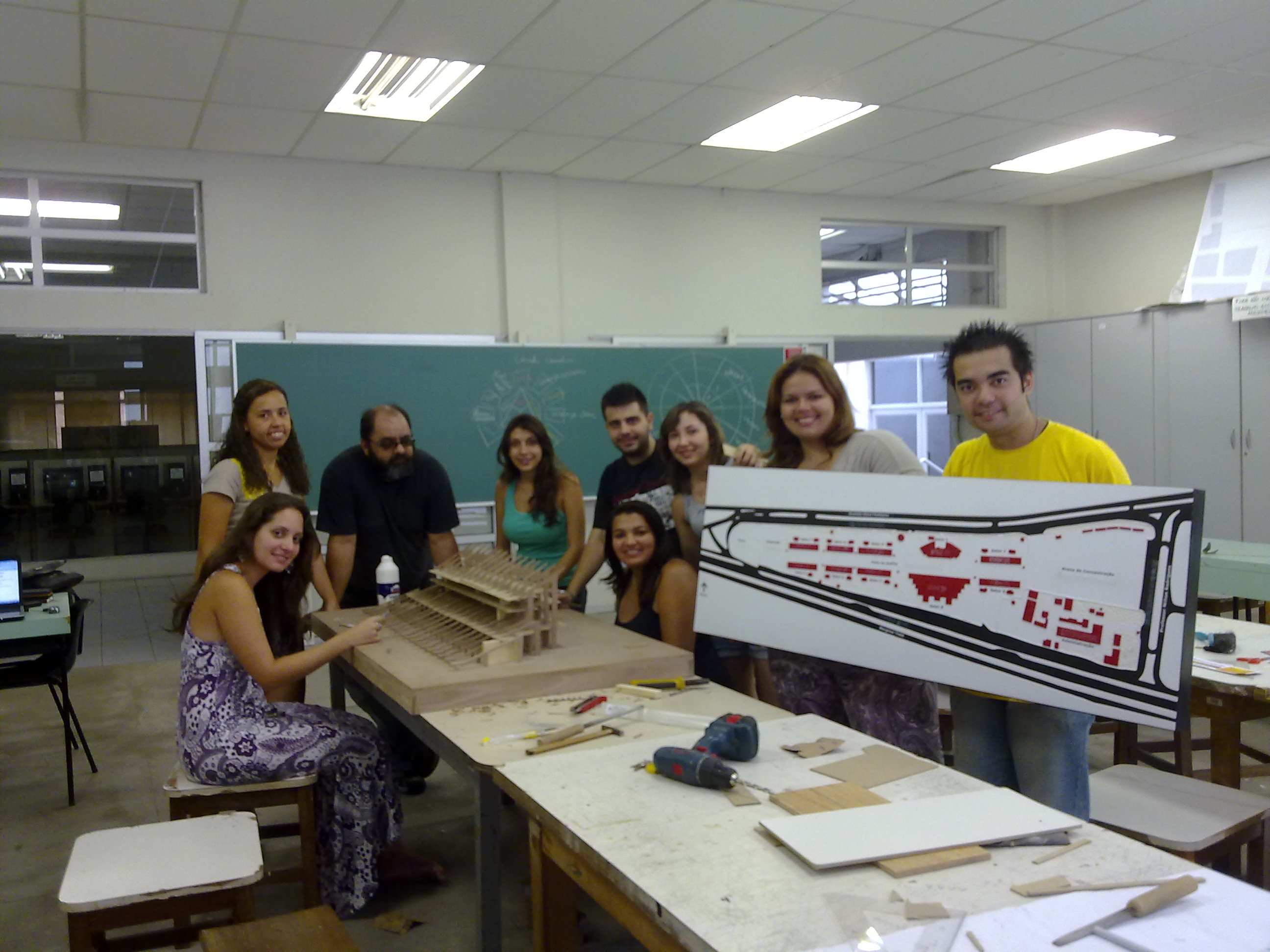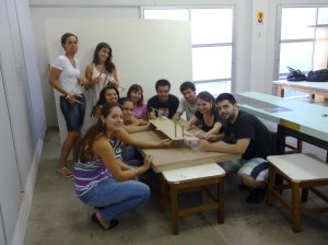 Todo o grupo reunido para terminar a maquete tátil da arquibancada monumental. Vocês estão vendo?!?