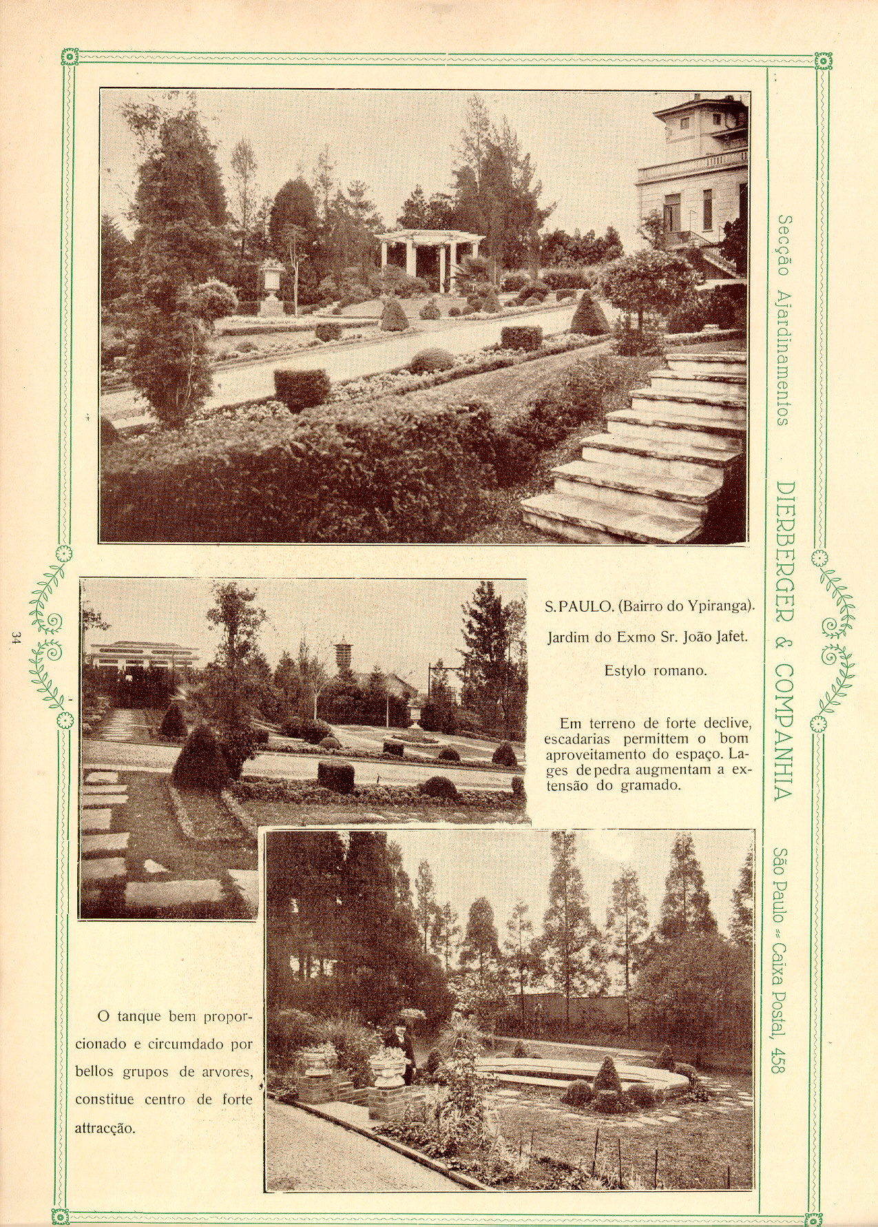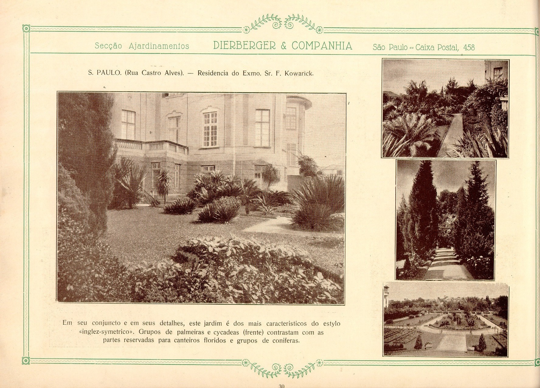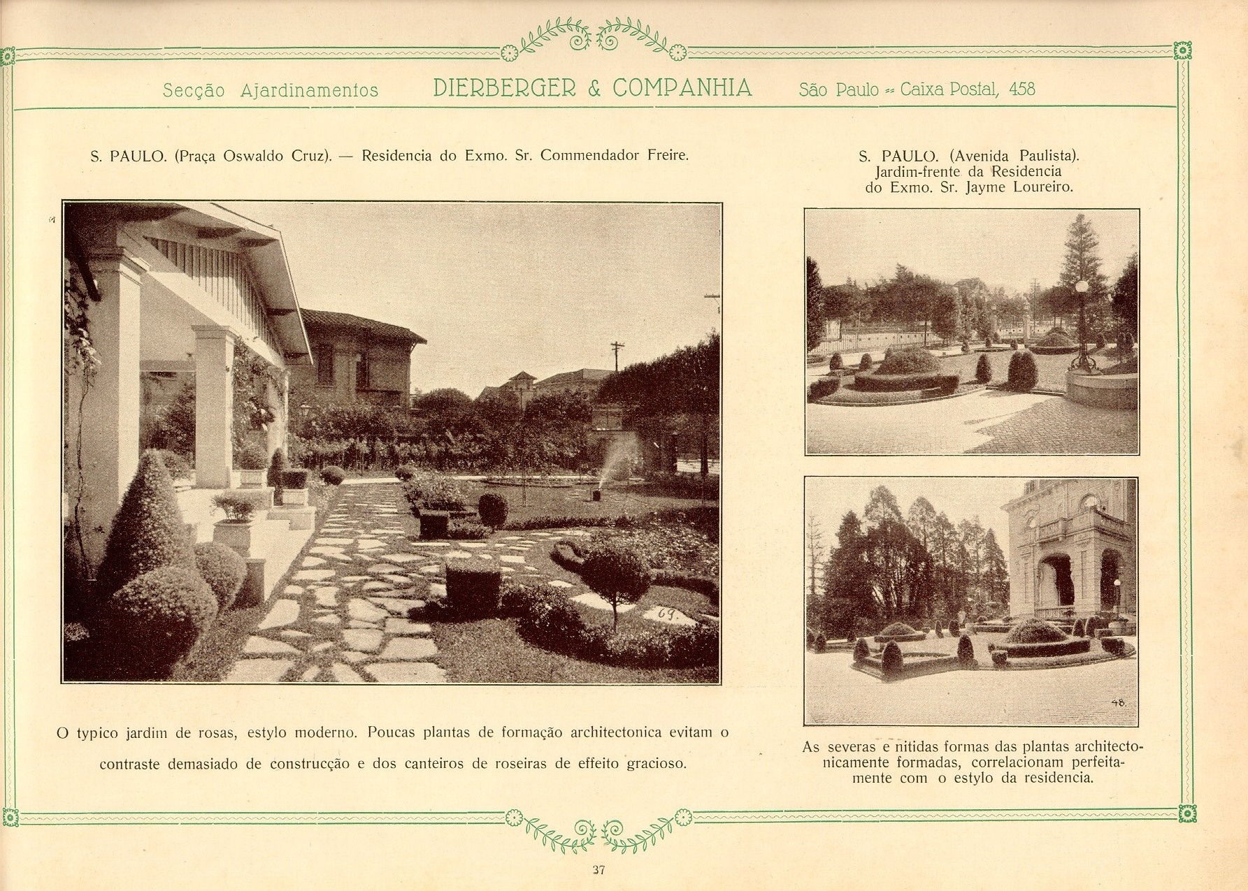 Datado de 1928, o livro Dieberger & Companhia: arte e jardim foi digitalizado e inserido neste post. O material, apesar de sua linguagem datada, é precioso pois mostra a passagem dos ajardinamentos tidos como ornamentos ou ainda coadjuvantes dos edifícios para um papel principal interagindo e integrando-se ao projeto de arquitetura nas palavras de Dieberger.