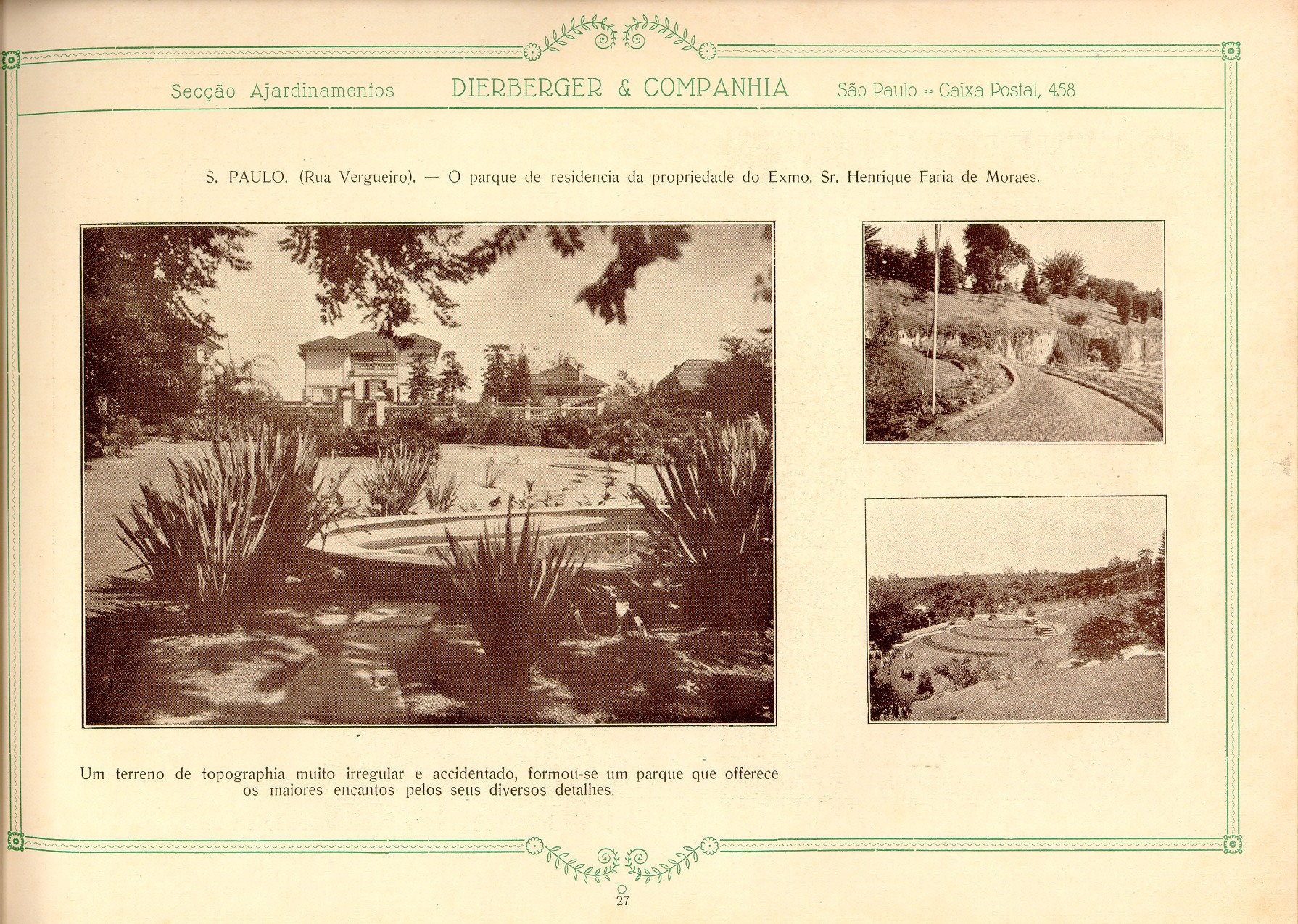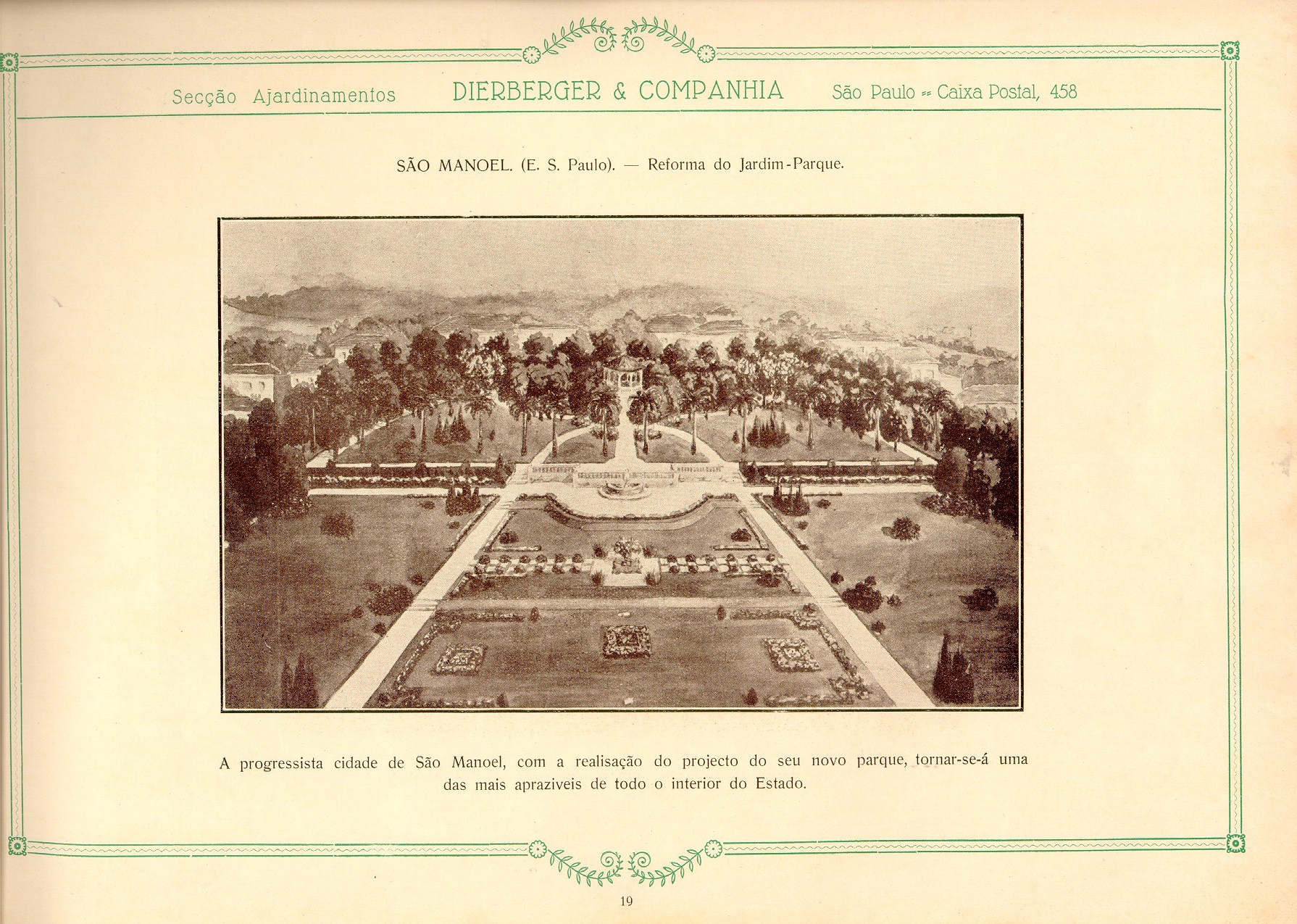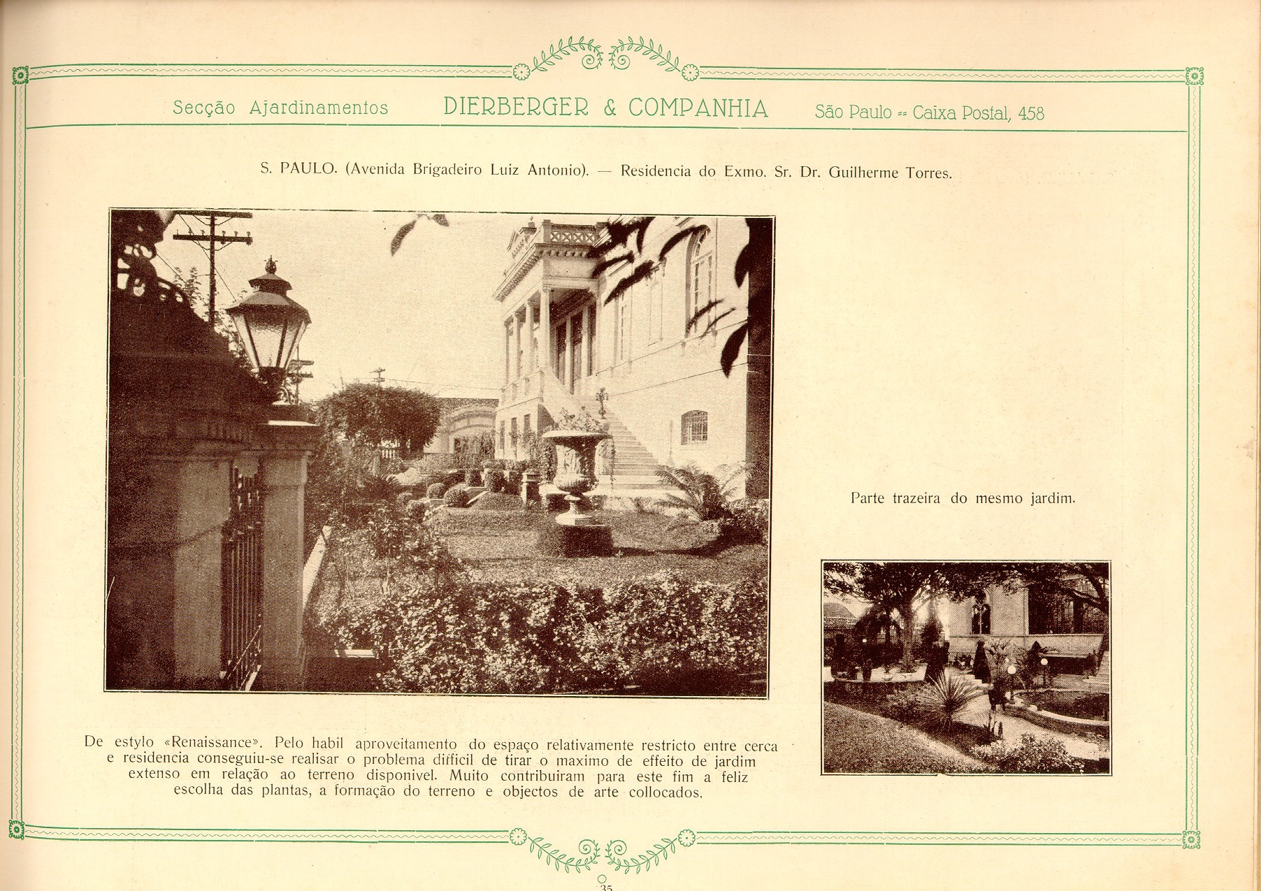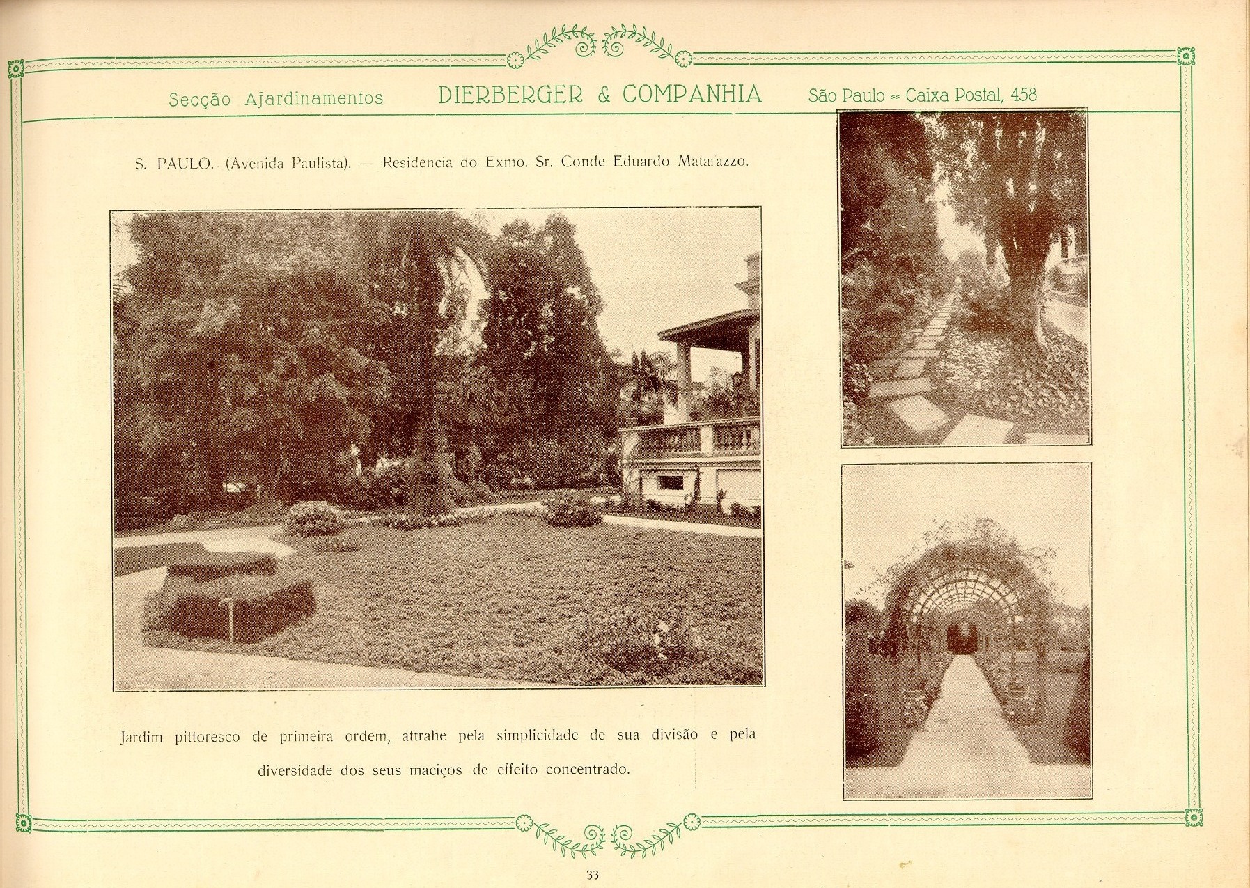 Datado de 1928, o livro Dieberger & Companhia: arte e jardim foi digitalizado e inserido neste post. O material, apesar de sua linguagem datada, é precioso pois mostra a passagem dos ajardinamentos tidos como ornamentos ou ainda coadjuvantes dos edifícios para um papel principal interagindo e integrando-se ao projeto de arquitetura nas palavras de Dieberger.