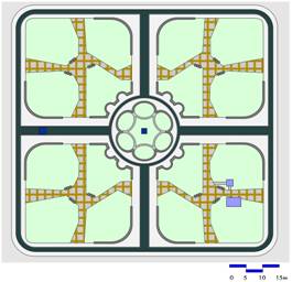 ·hierarquia nas circulações com presença de caminhs secundários perimetrais;